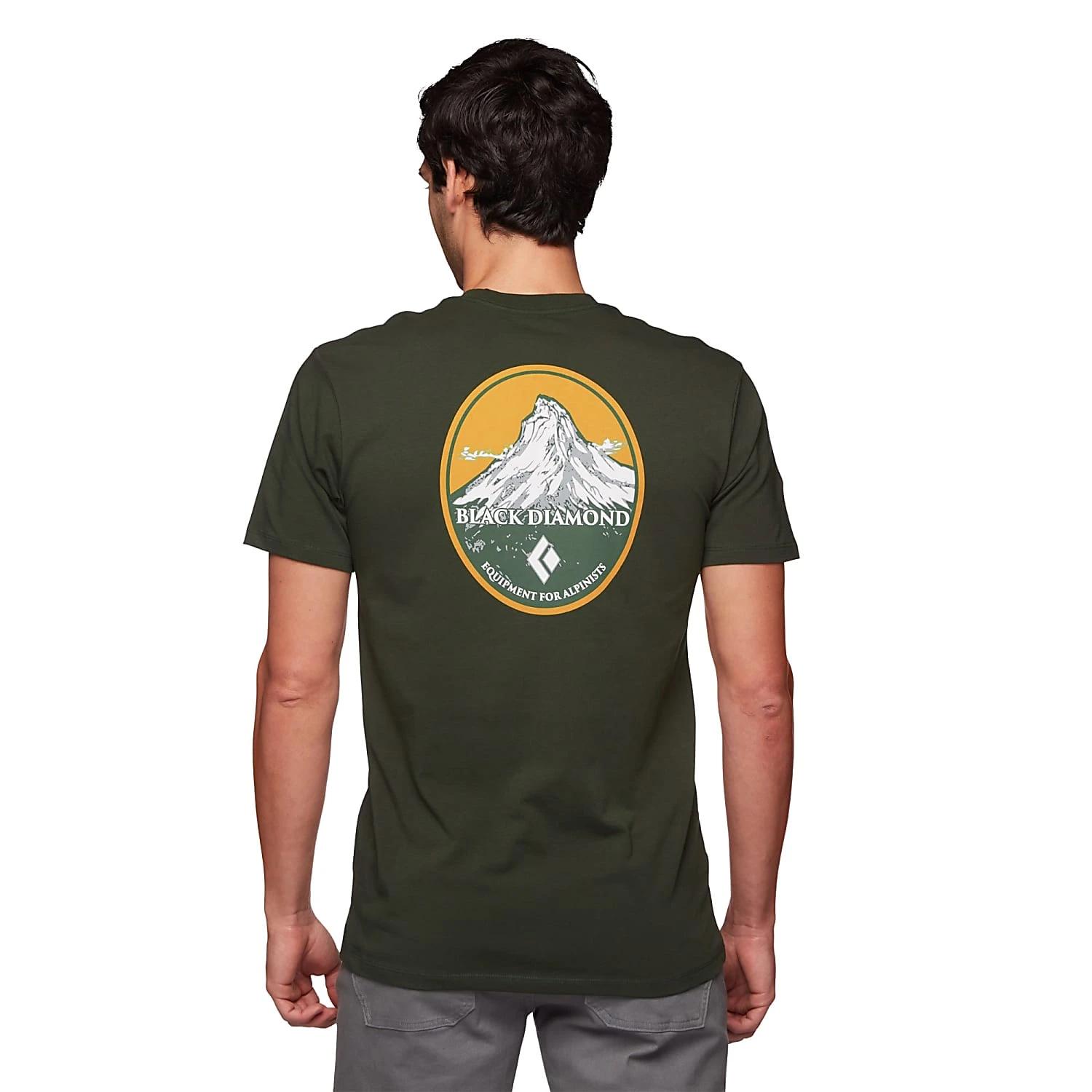 Product description for Black Diamond M MOUNTAIN BADGE TEE, Cypress Outerwear Male